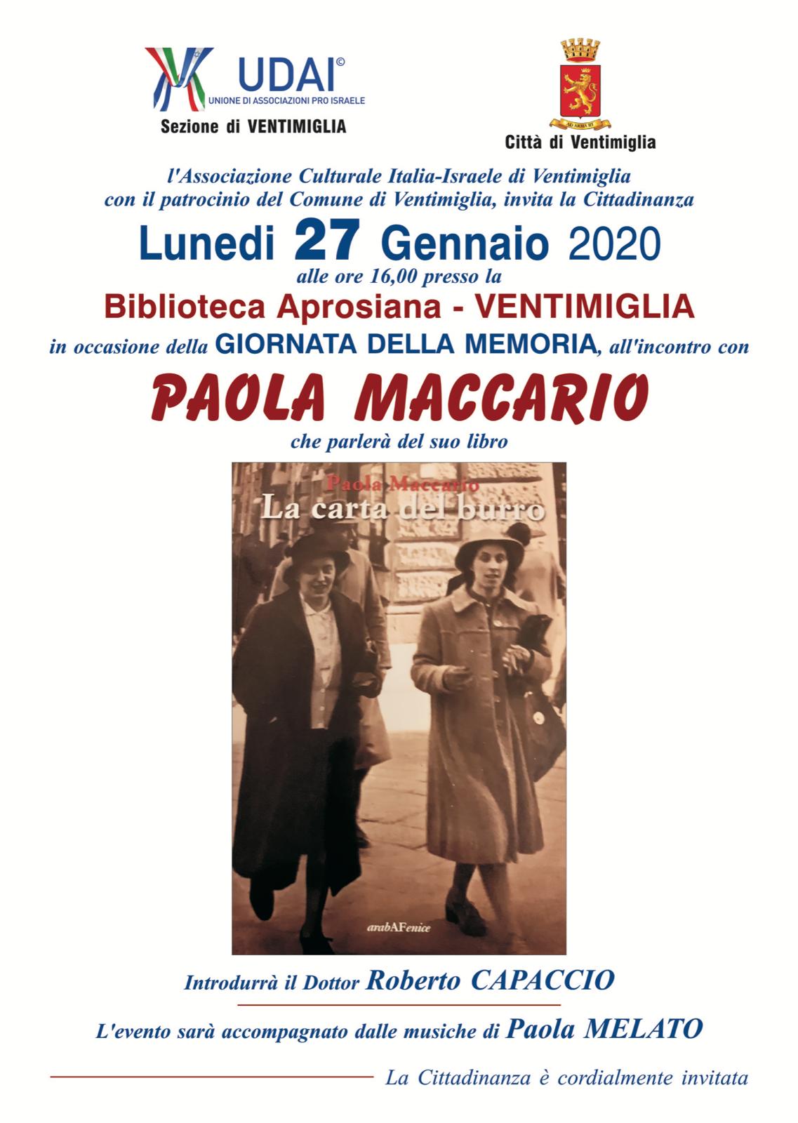 presso la sede della Associazione culturale Italia Israele Ventimiglia, Via Sottoconvento 31,sara' lieta di presentare