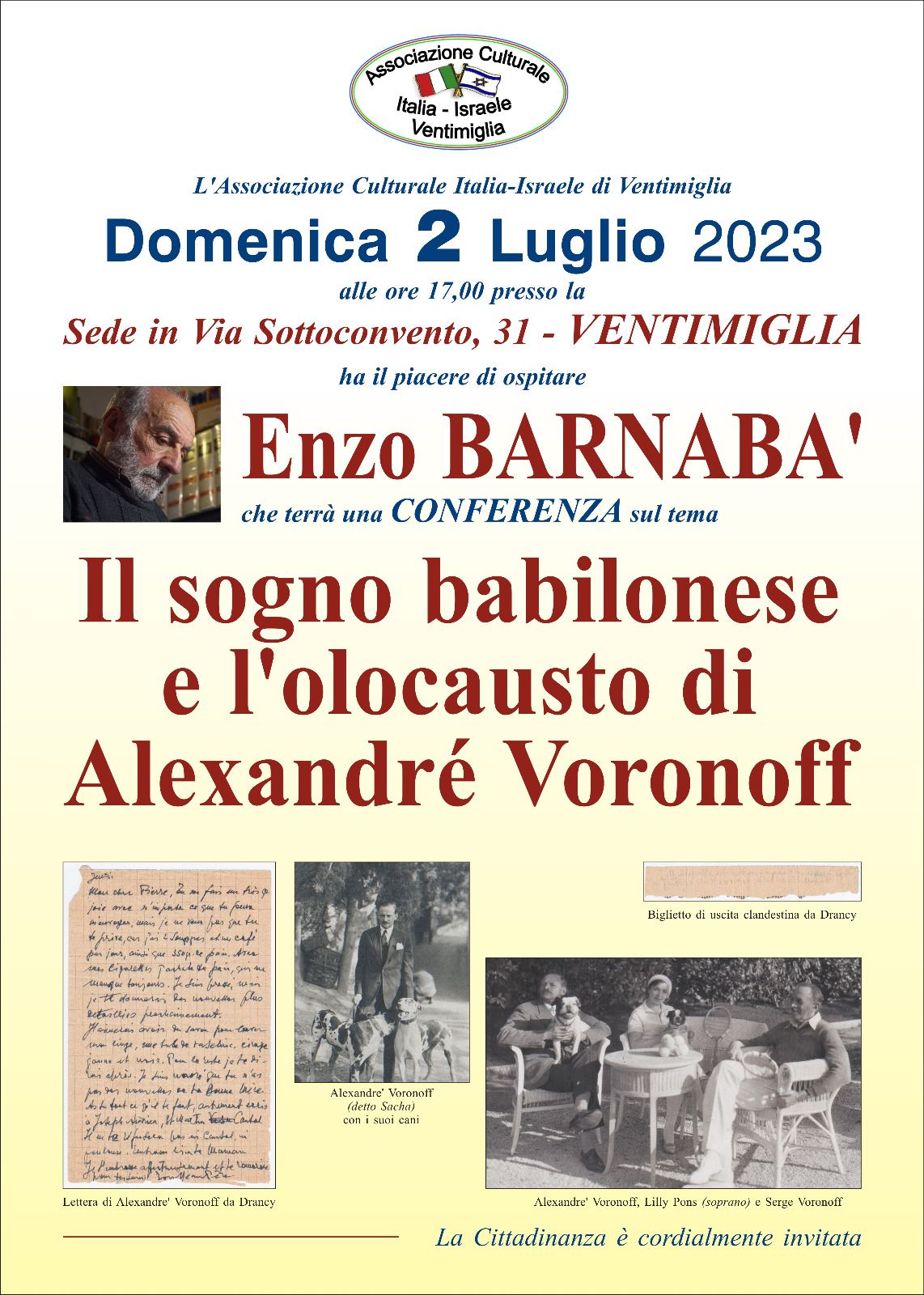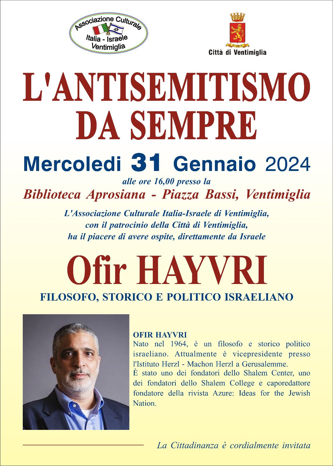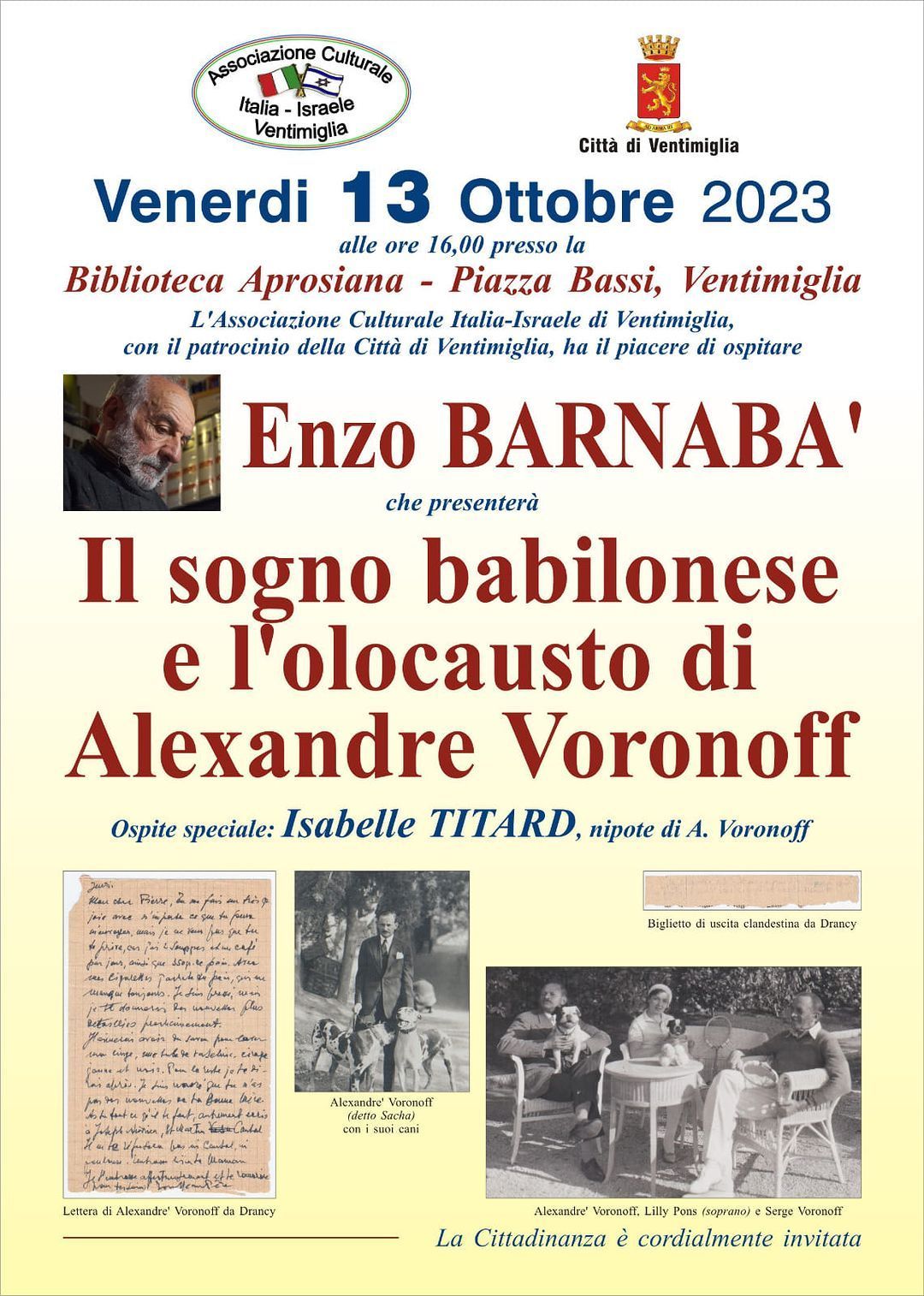 Presso la sede della Associazione culturale Italia Israele Ventimiglia, Via Sottoconvento 31,sara' lieta di presentare
