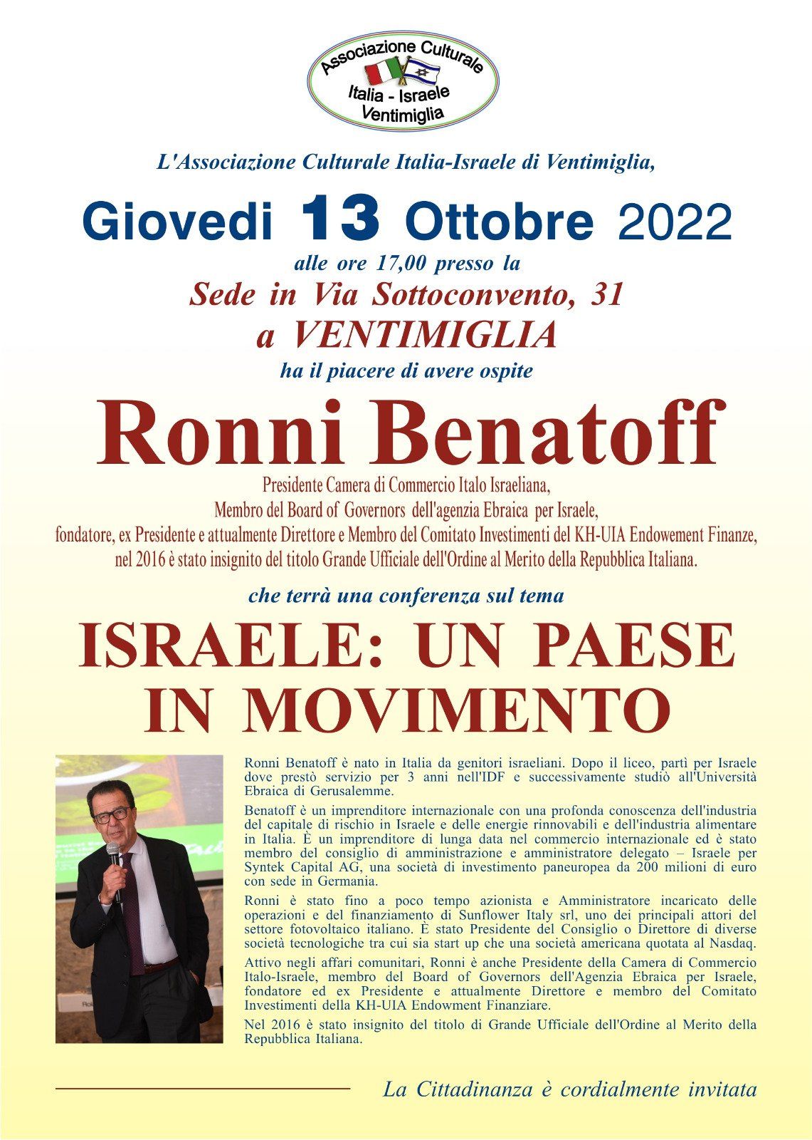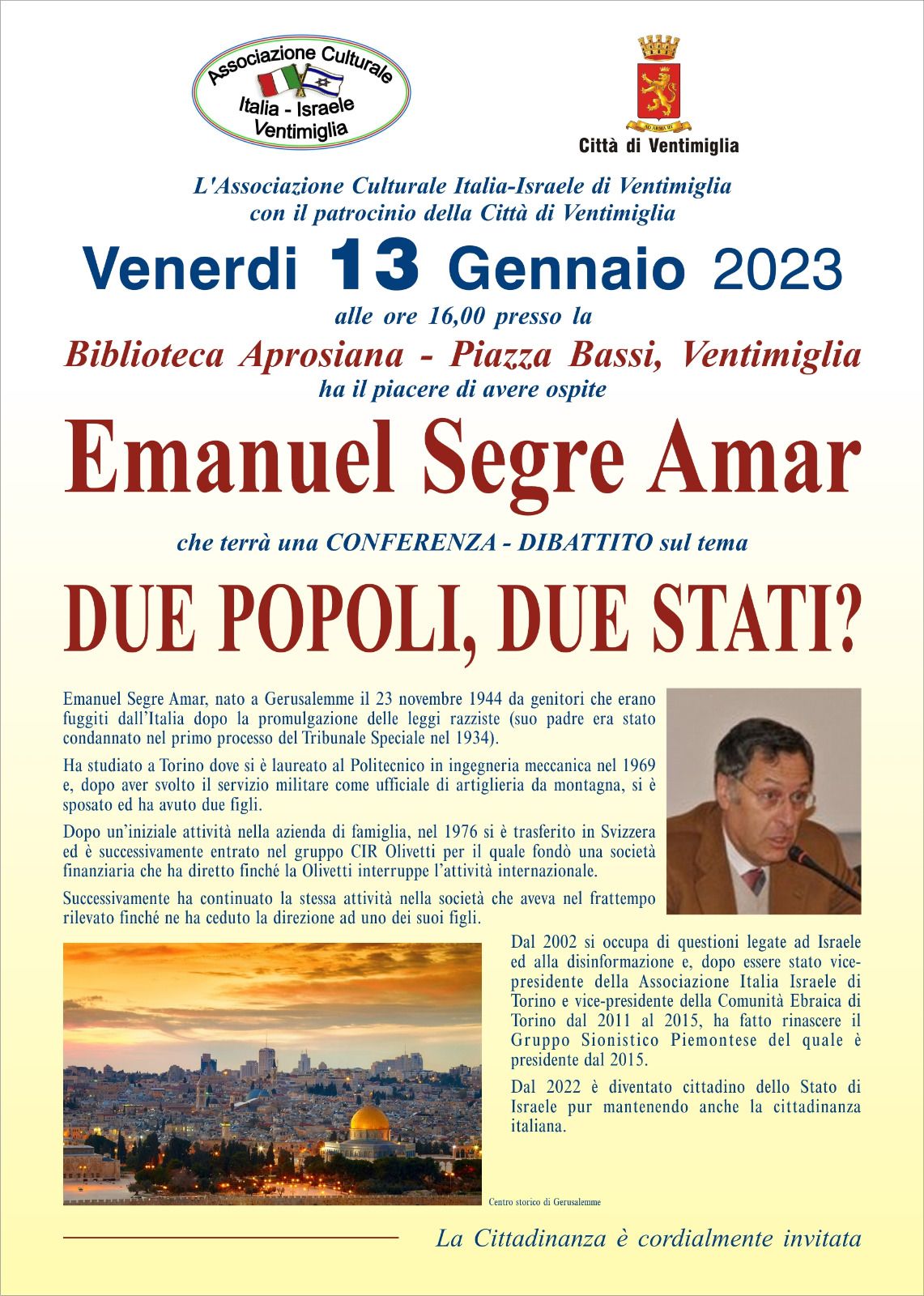 dall'Associazione Culturale Italia Israele di Ventimiglia Sanremo International